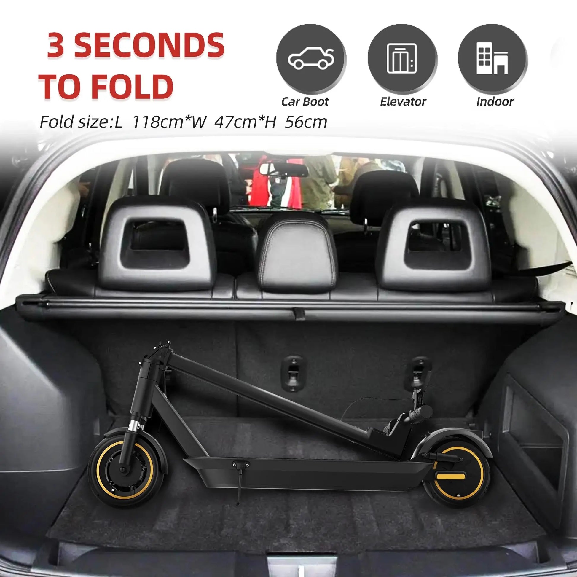 - Portability and practicality: You can fold it for storage, it supports up to 120 kg, weighs 18.5 kg, and features bright front LEDs for visibility.